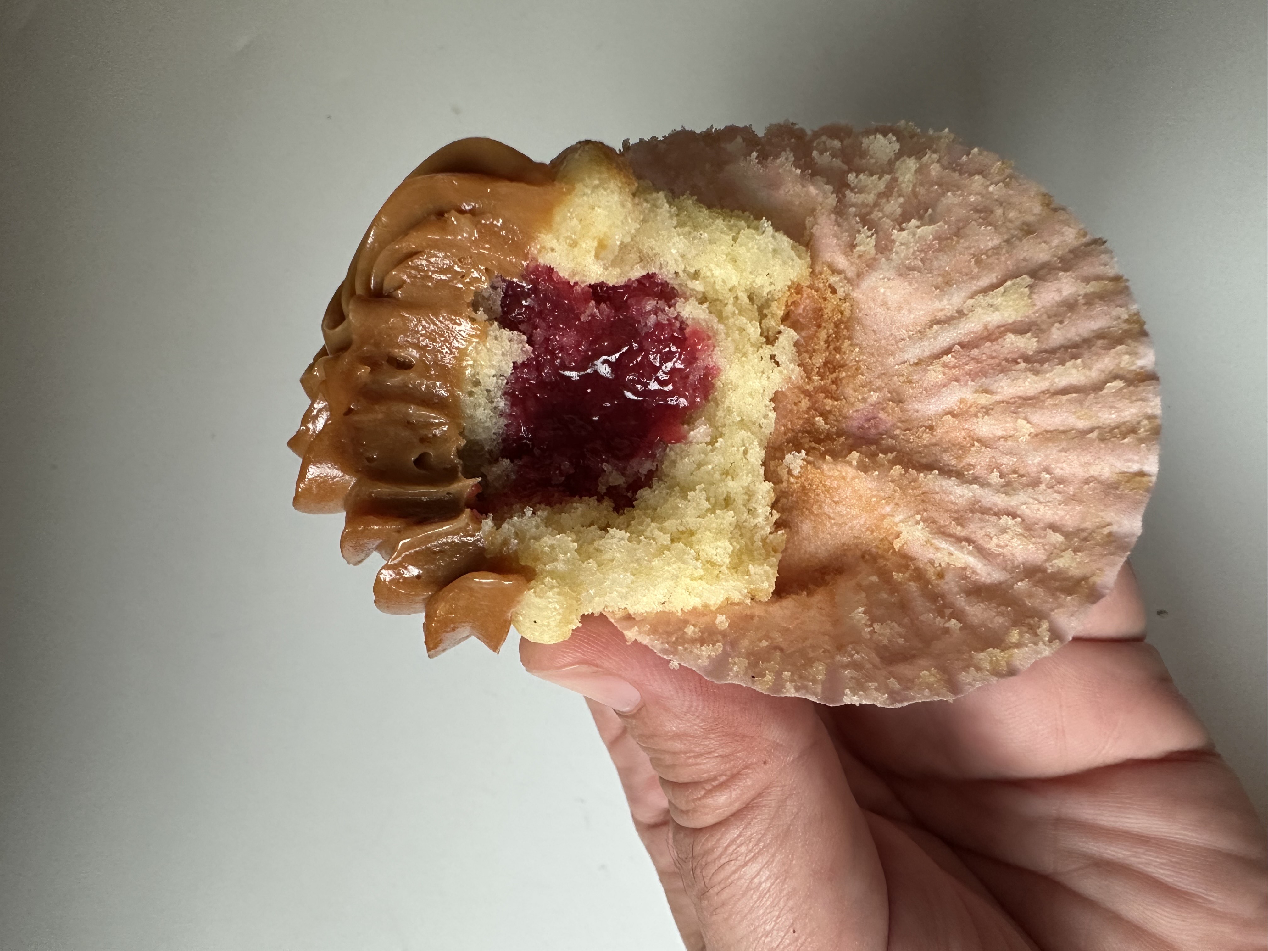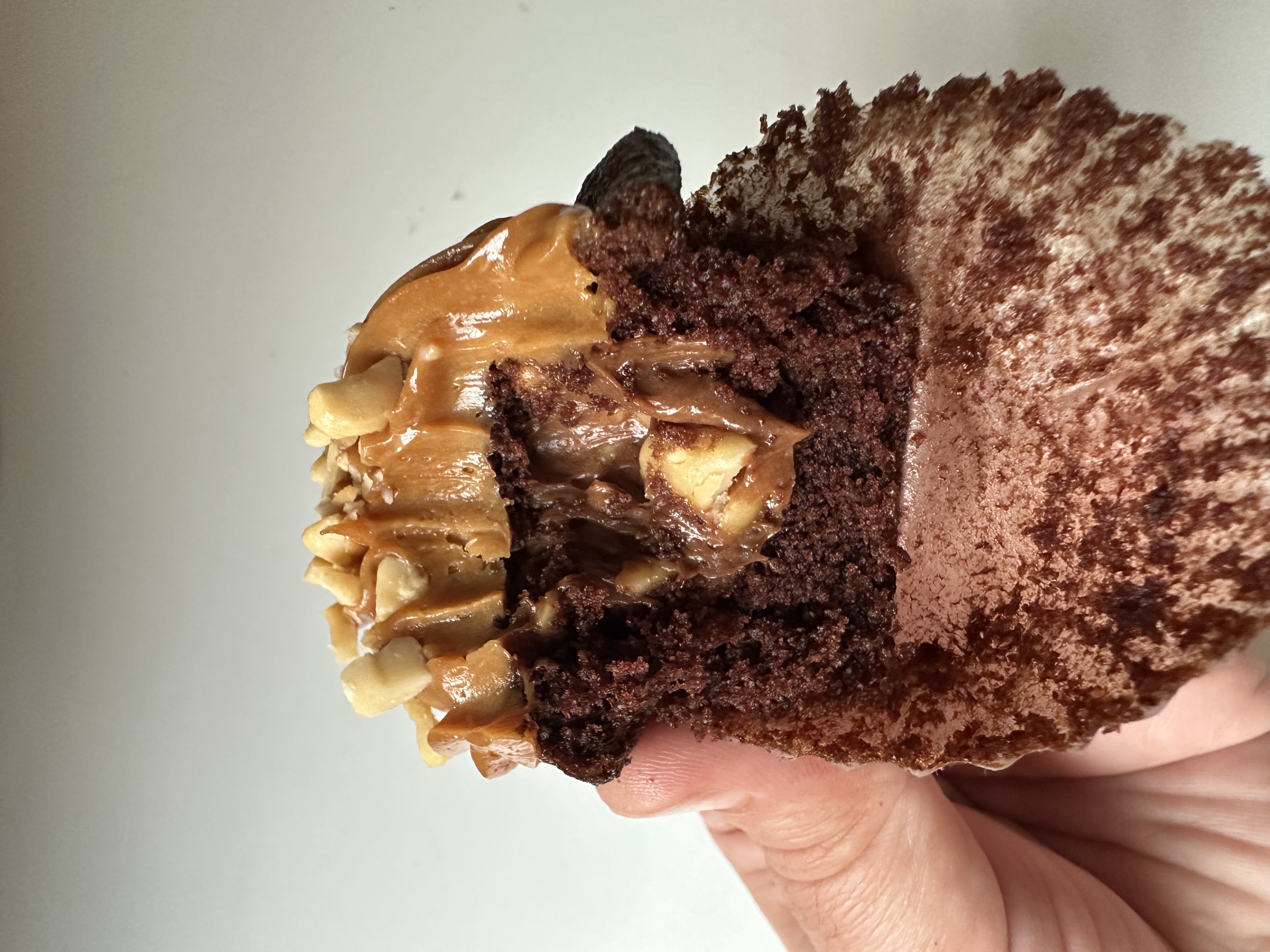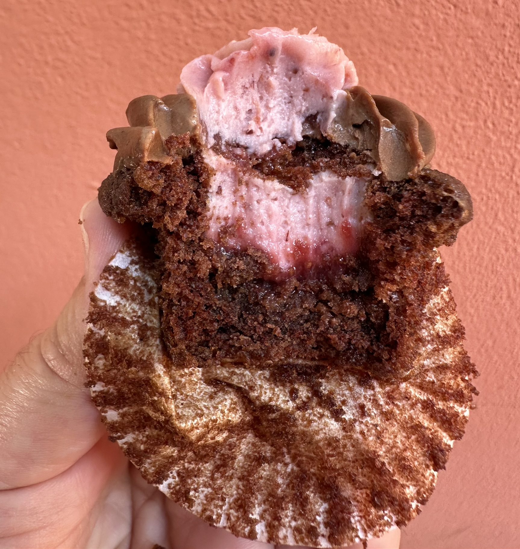 ganache de chocolate, chantilly e uma colheradinha de geleia de amora